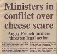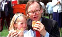 May: With rising numbers of cattle being infected with BSE, the Minister of Agriculture seeks to reassure the public by eating beefburgers in public with his daughter.